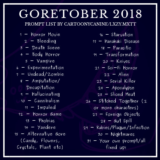 Toony S Goretober 2018 Prompts By Cartoonycanine On Deviantart